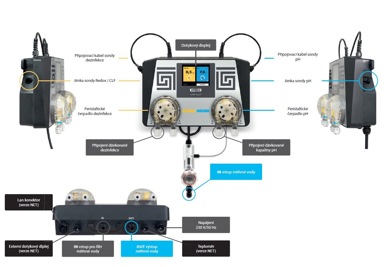 ASIN Aqua REDOX je dávkovací automat vybavený sondami Redox a pH.