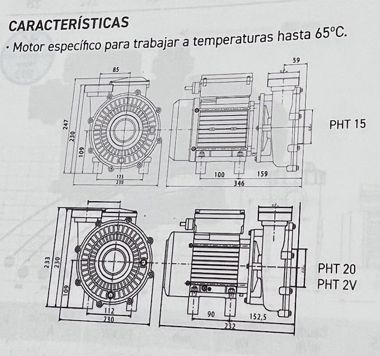 Specifický motor odolný vysoké okolní teplotě = 65°C. Navrženo a vyrobeno tak, aby vydrželo teplo (pro: podzemní jednotky nebo filtrační blok vystavený slunci) K dispozici ve dvou rychlostech: PHT 2V (nízká nebo vysoká rychlost). Měňte rychlost pomocí pneumatického systému Dálkové ovládání přes Bluetooth® s Blueswim EO (kromě PHT 2V)