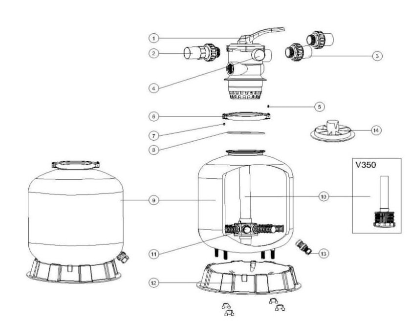 Filtrační nádoba je z polypropylenu. Filtrační nádoba je osazena horním 6-ti cestným ventilem. Spojení ventilu s nádobou je pomocí obručové klemy a těsnění. Ventil má připojení přes vnitřní závit d 1 1/2". Náplň filtrační nádoby je křemičitý písek o zrnitosti 0,4 - 0,8mm.Cena zahrnuje: Filtrační nádobu, vnitřní propojení, 6-ti cestný ventil, klemy a manometr.