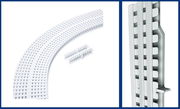 Mřížky se spojují ve středové části zasunutím.1 bm se skládá ze 45 jednostlivých mřížek.