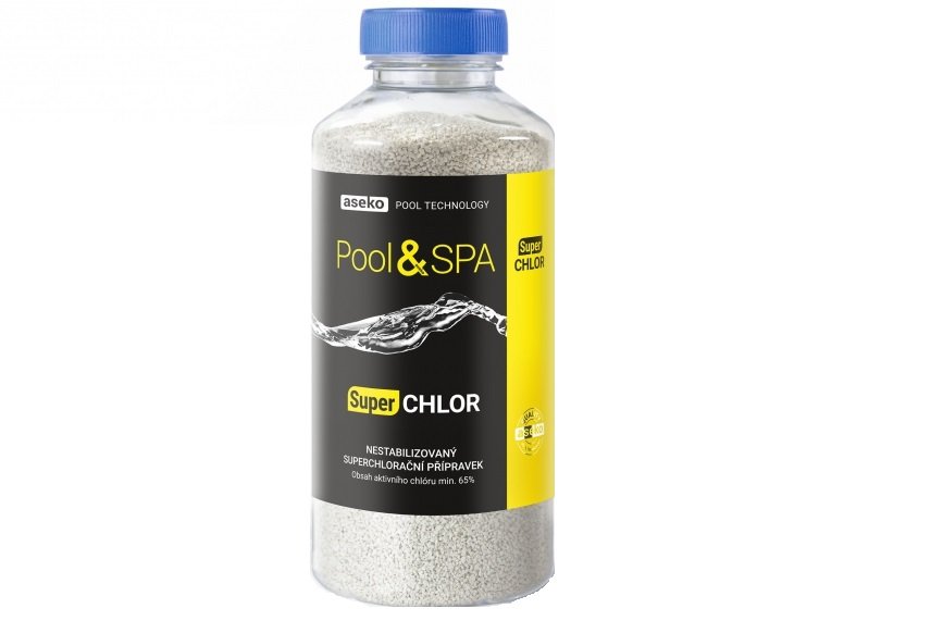 Superchlor nestabilizovaný - superchlorační přípravek (obsah aktivního chlóru 65-70%). Extra rychle rozpustný přípravek superchlor slouží k superchloraci bazénové vody. Šokově zlikviduje všechny mikroorganismy a sníží obsah celkového chloru (ten způsobuje zápach). Zoxiduje nečistoty a vodu v bazénu projasní.